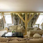 Nogle værelser har udsigt over haven. Et badekar og en bruser opbevares på badeværelset.